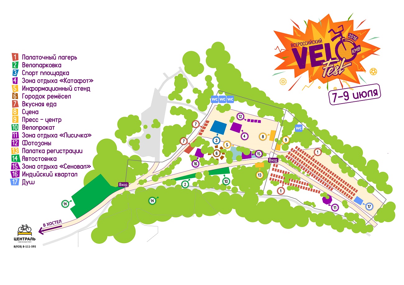 3 дня увлекательных велособытий: велоквест, велогонка Кубок КМВ; веломаскарад; встречи с путешественниками и мастер-классы; велокино; зажигательные концерты; работа антикафе «Шишки»; конкурсы; подарки и многое другое.