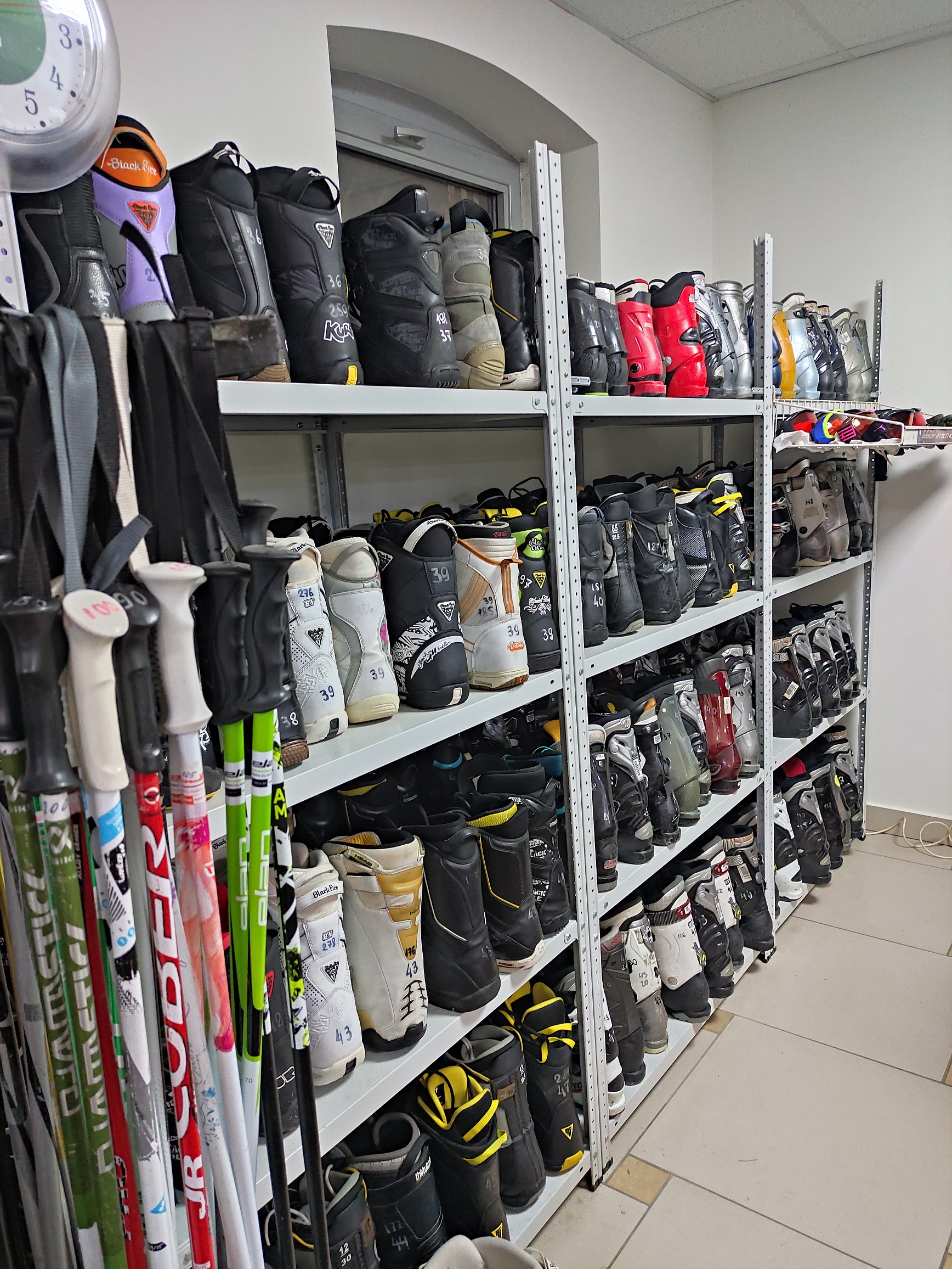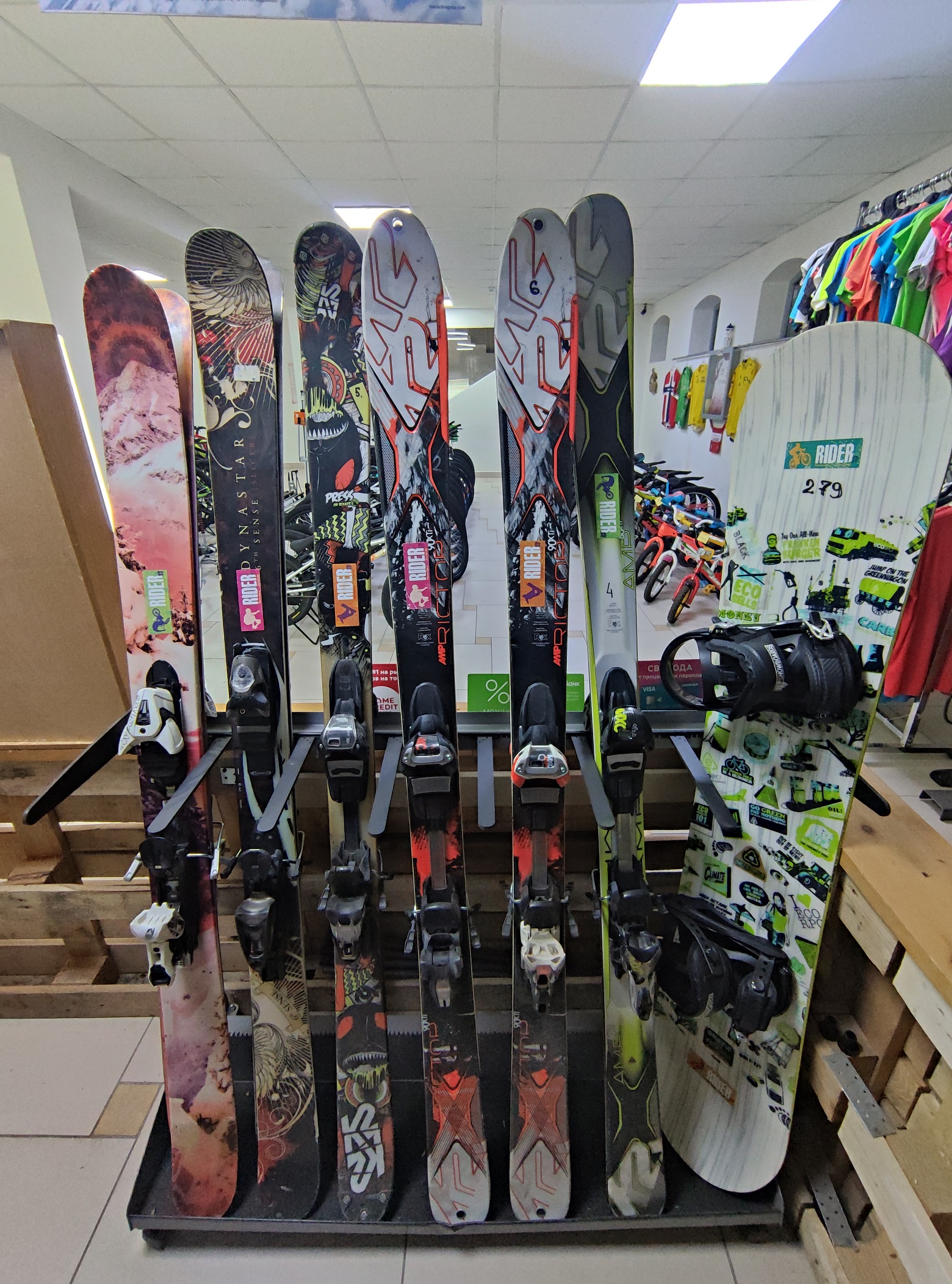 У нас Вы всегда можете взять напрокат в зимний сезон горные лыжи или сноуборды, а так же сопутствующие аксессуары.