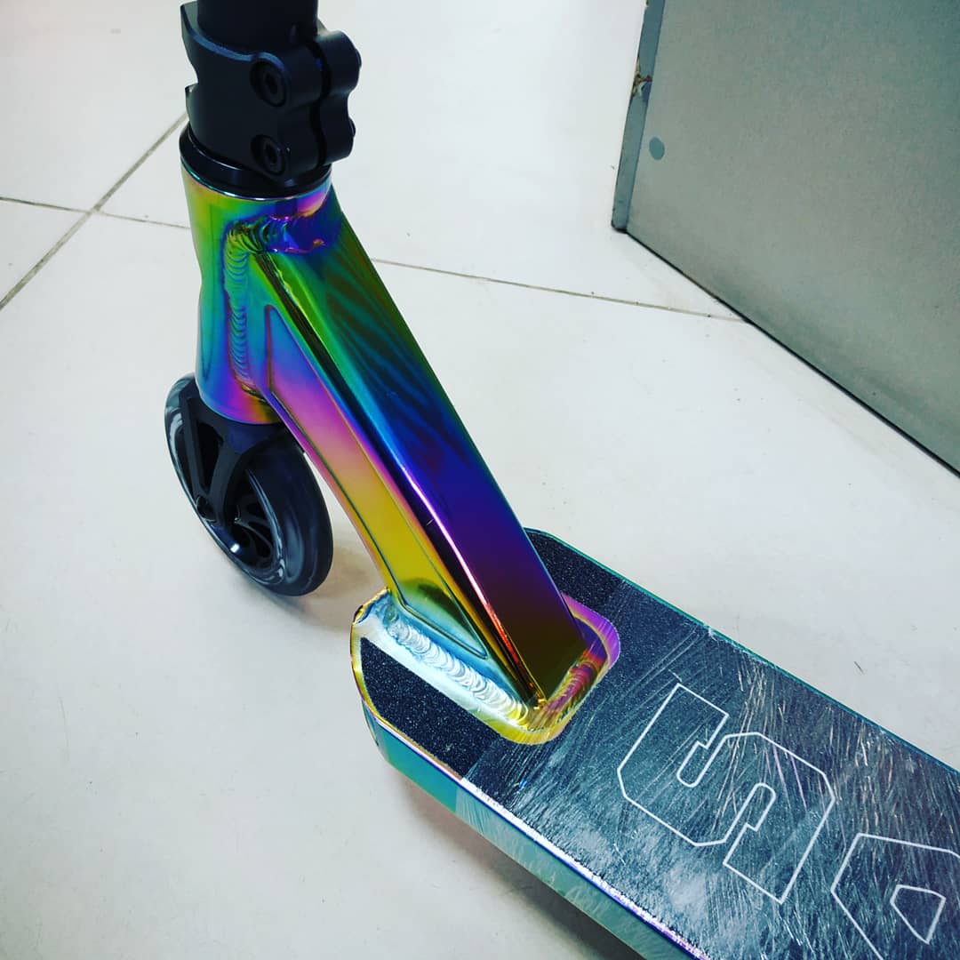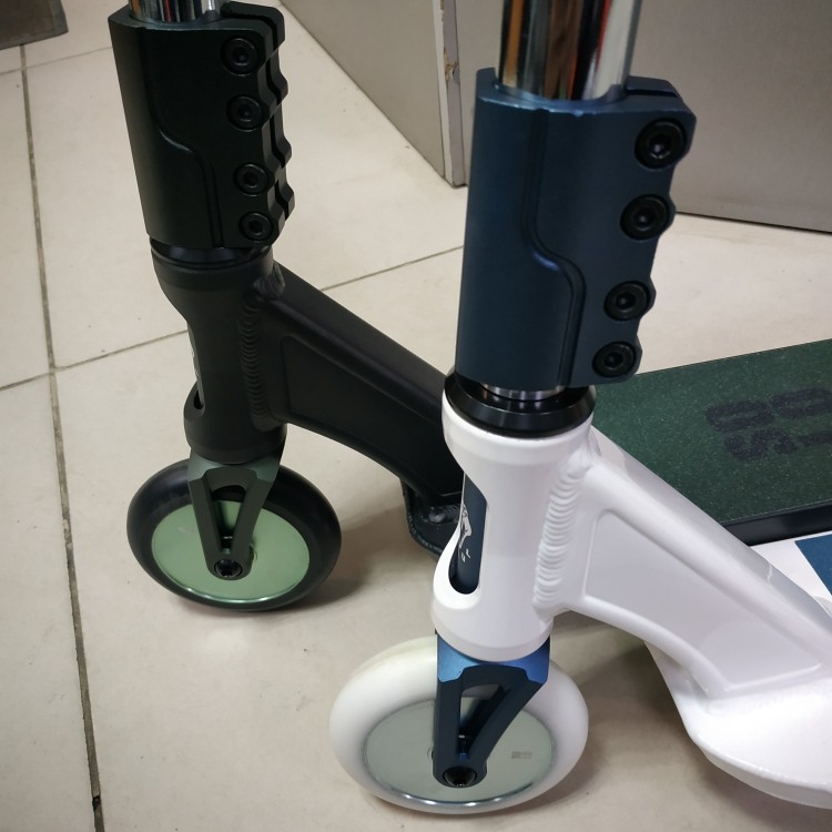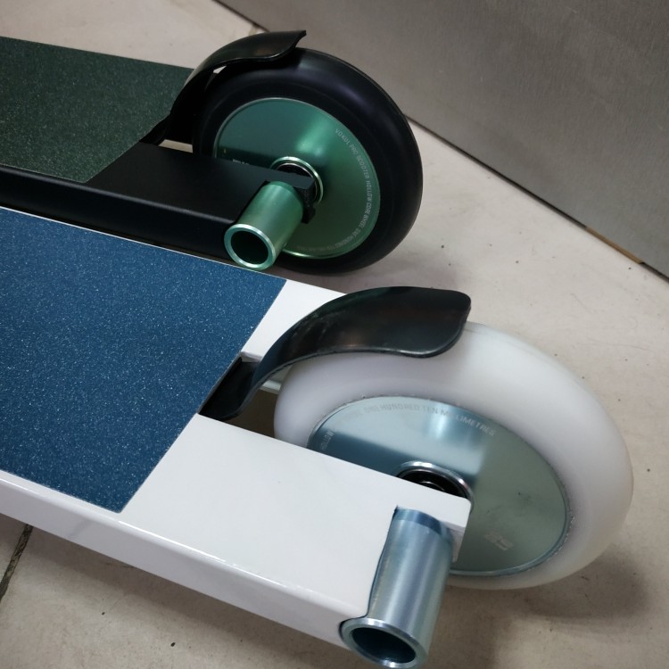 Само название говорит о предназначении этого вида самокатов. В связи с тем, что при выполнении трюков самокат испытывает сильные нагрузки, он имеет ряд специфических отличий. В первую очередь это отсутствие складного механизма и регулировки руля. Так же они имеют максимально простую, обладающую повышенной прочностью, конструкцию; зачастую изготавливаются из авиационного термообработанного алюминия. Колёсные диски изготавливаются как из пластика (на моделях начального уровня) так и из алюминия, которые бывают спицевыми или цельными. Диаметр колёс разнится от стиля и уровня катания — для стрита чаще используют 110-120 мм, а для парка 100-110 мм соответственно.